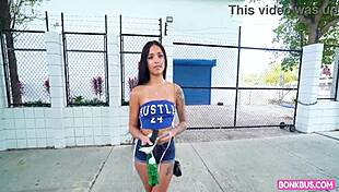 huge fake tits brunette amateur rides monster cock for cash on bang bus