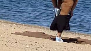 Juicy Asian teases beach cameltoe hidden!