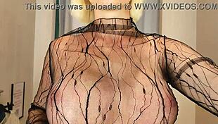 naked blonde with big tits tries see-through clothes in dressing room upskirt