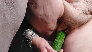 Mature Woman Uses Cucumber and Toy