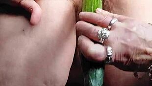 Mature Woman Uses Cucumber and Toy