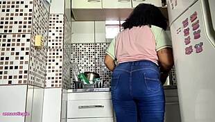 Curvy Babe Farts Softly in Tight Jeans While Washing Dishes