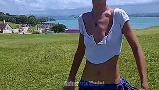 Jeny Smith flashes her pussy and fingers herself in front of stranger?