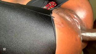 She's too small for this massive cock in tight anal play. Creampie spills over her big ass.