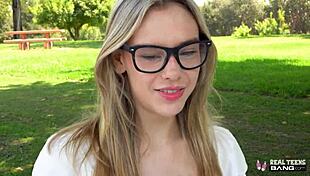 blonde teen glasses lingerie graduate subtle allure