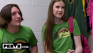 skinny shoplifter teen strips and rides cocks cowgirl to escape prison gangbang