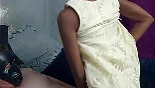 A juicy booty masked ebony amateur gets fucked by a skinny dude in close-up.