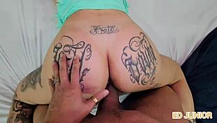Tattooed slut prepares for intense porn scene with leon lambert in transparent skirt and pantiless in kitchen and bathroom