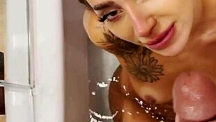 monika fox licks and sucks, getting a mouthful of piss in the shower 😏💦