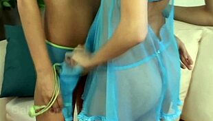 pretty babes tease each other in soft lesbian play