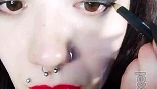 backstage with hot brunette neighbor in uniform teasing her pierced tongue