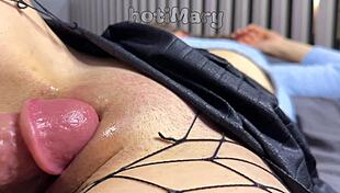 U kućnom snimku izbliza, fetiš ljubiteljka kida gaćice. Sperma teče iz njene uske pičke posle divljeg kreampaja.