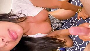 This latina teen with a delicious ass blows a monster cock.