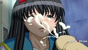 boss touches his young employee while treating a customer in this hentai