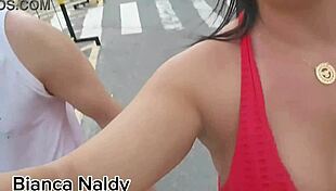 horny brazilian milf flashes big tits pussy on public car sex app