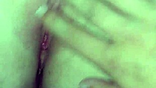 horny milf fingers tight wet pussy in close-up view