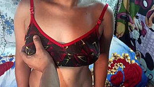 desi indian teen girlfriend gets bent over for rough doggystyle on bed