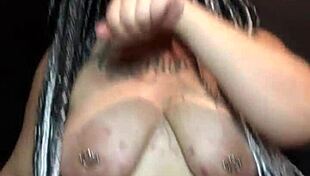 thick ebony babe big boobs huge ass dildo riding solo
