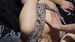 The hottest couple explores kinky handjob leading to massive cum from prostate massage with her as mistress
