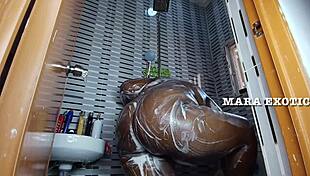 ebony nigerian bbw couple shower doggystyle with big black cock shaking her juicy fat ass mara exotic