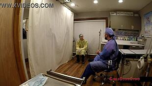 Enfermera con tetas enormes azota a joven morena en bondage hospitalario