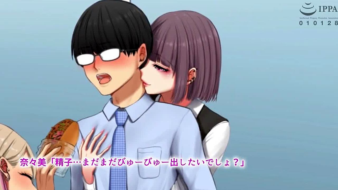 in this hentai anime, the group engages in a threesome with blowjobs, banging, and creampies
