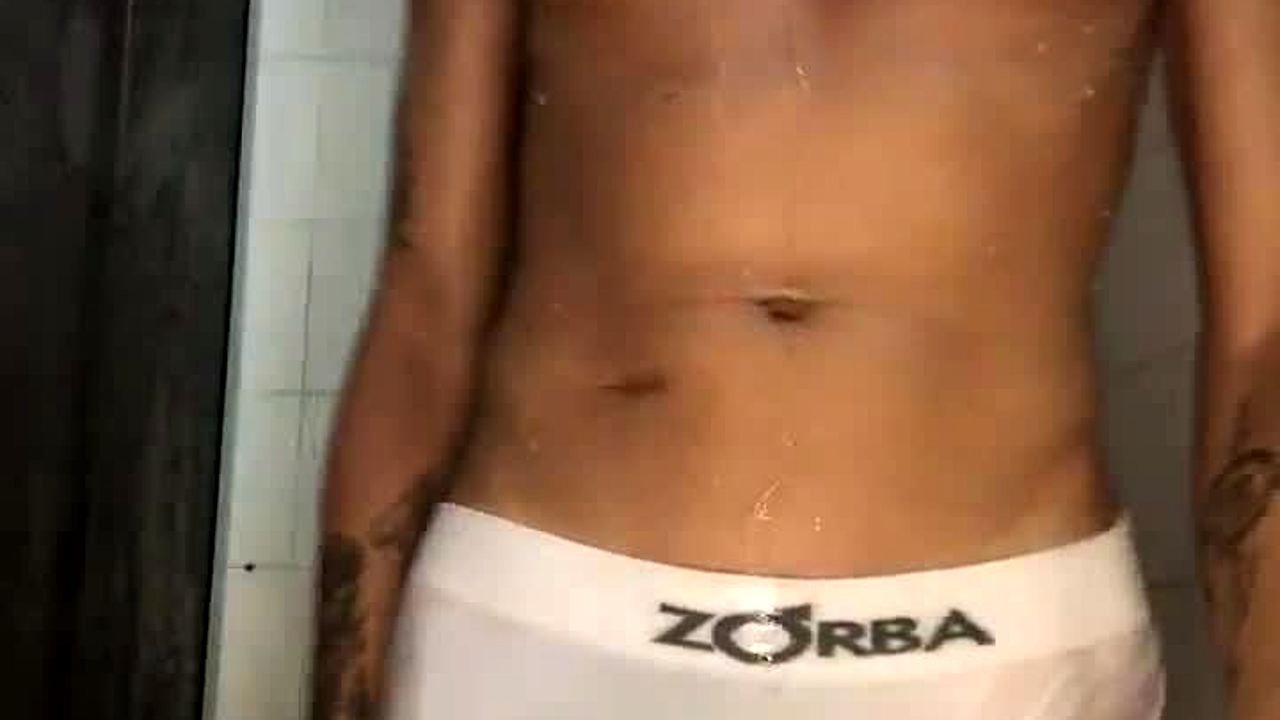 Novinho strokes big dick in shower