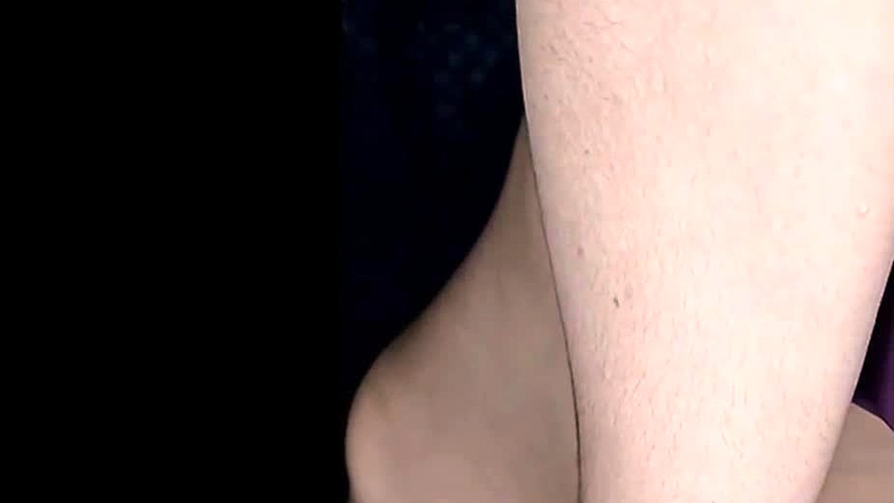 Asian teen gives footjob after pedicure.