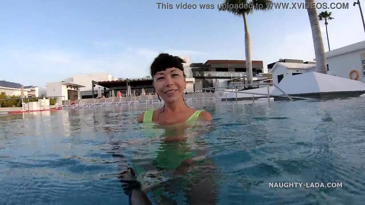 I had a hot threesome in the pool with a nymph and a guy with a big cock, my pussy got so wet.